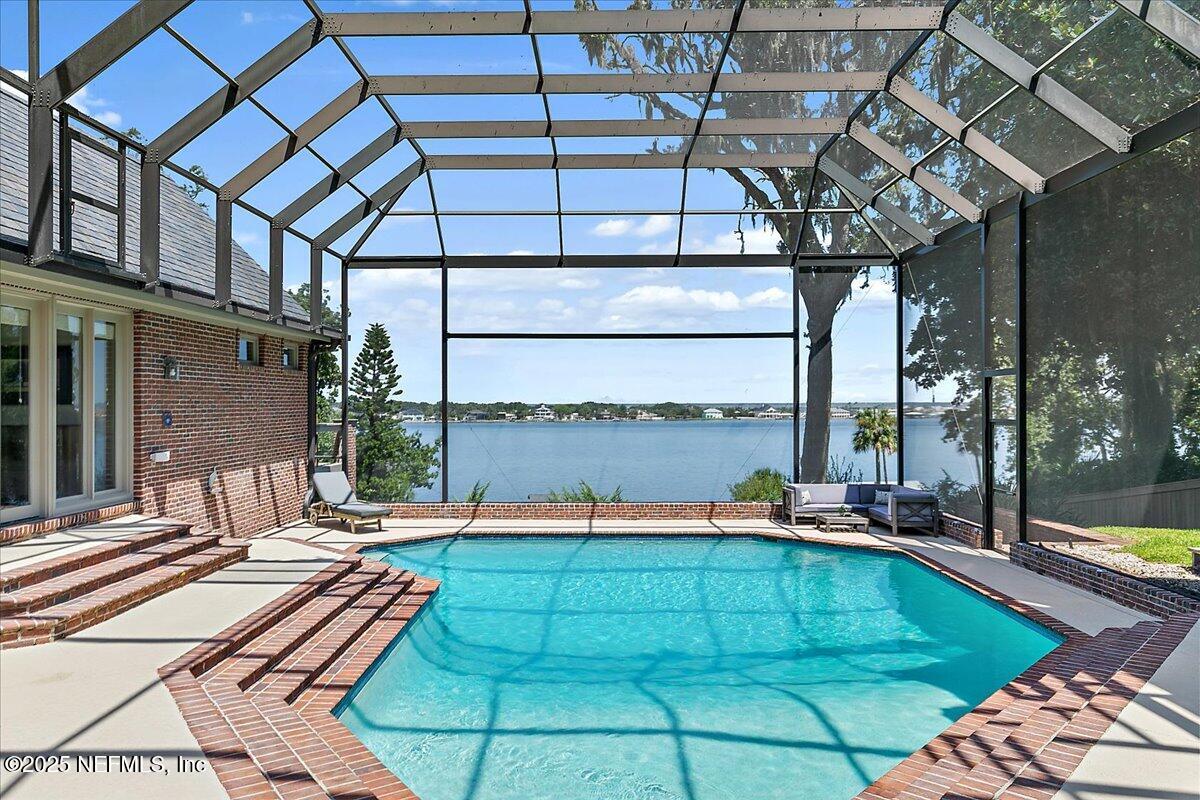 Spectacular screened, river view pool and spa that's the center showpiece of the home