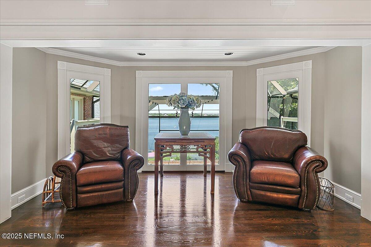 Formal living, dining, office and guest suite plus lavish primary suite on first floor, primary bath has panoramic river view