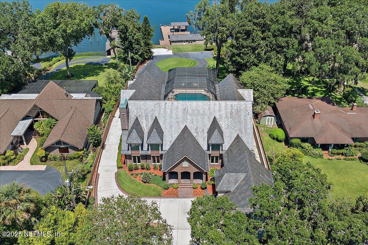 Panoramic views from this riverfront BLUFF Masterpiece , DEEP water river front with direct, easy access to the Atlantic Ocean, with high elevation and gorgeous gentle slope to boat lifts, docks and charming dockhouse. This iconic riverfront estate offers an unparalleled lifestyle for those who crave elegance, tranquility, and adventure. Perfectly blending luxury with nature, this property is designed for those who love to entertain, relax, and embrace the water. This deep-water home is a boaters and fisherman's dream. Enter through a private gate with a lush drive to the gorgeous, stately brick home with 8500 sq. ft. of living space, on a 1.53 acre lot. Natural slate stone roof. Dramatic 2 story entry and staircase, marble and wood flooring, exposed beam ceilings, new state of the art kitchen, lovely living and dining room, office and primary bedroom on first floor. Double story screened pool and hot tub with river views. Riverside features new docks, bulkhead and dock house Enjoy waterfront living with all the security and privacy you can imagine. See more