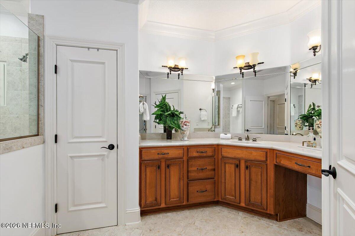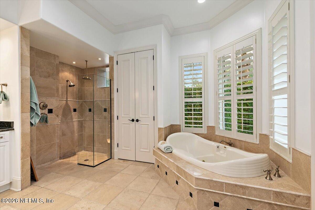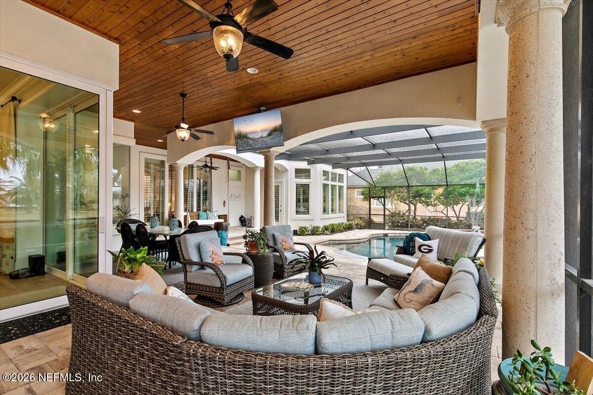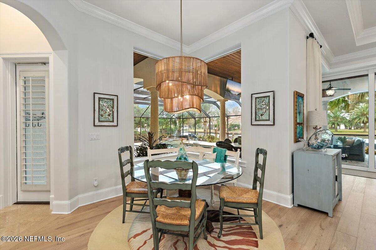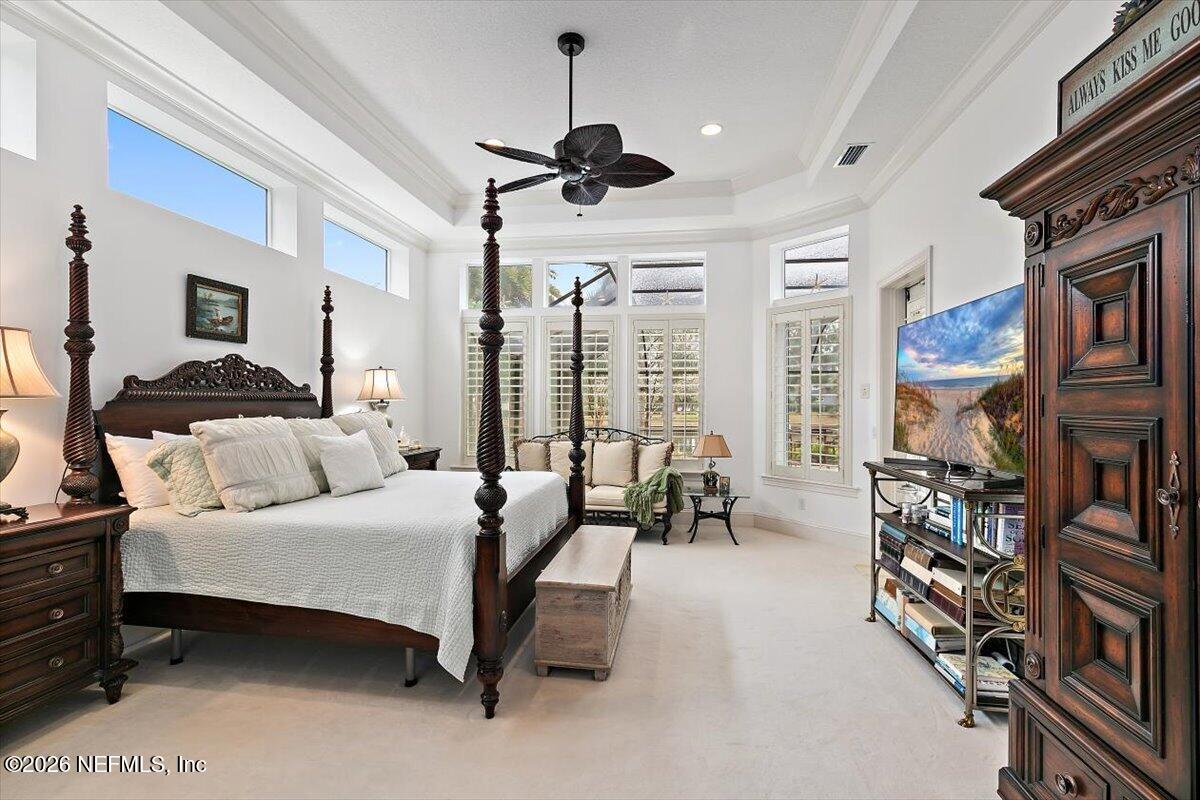 Abundant natural light, high ceilings and water views from almost every room. Travertine flooring in formal areas and stunning stair case, totally renovated kitchen with big island, white cabinets , quartz and Jennaire appliances. Updated butlers pantry /wet bar, & Family room with new fP and new wide plank flooring. New Sliders that open to huge up-dated screened pool, lanai and summer kitchen. Lux. 1st floor primary with 2 walkins, soaking tub, sep, shower, 2nd bedroom down with murphy bed. 2nd floor features a large 2nd family room with door to evening deck, a 2nd primary suite and 2 other ensuites bedroom. There is a possible elevator