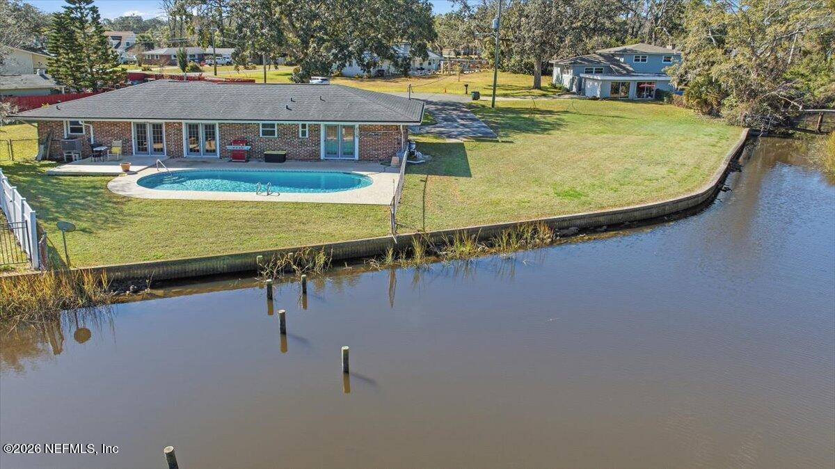 Welcome to your private waterfront retreat! This one-story brick POOL home was re-built in 2018 and sits on a huge, fully bulkheaded, canal lot with direct access to the intracoastal waterway, Atlantic Ocean and St. Johns River. It offers peaceful, wooded views and is located on private cul-de-sac. Very open floor plan with wood plank and tile floors through-out, smooth ceilings, great rooms with 2 sets of French doors overlooking pool and water, white and bright kitchen with tile countertops, 4 generous bedrooms . primary has French door to pool and views. Good size 2 car garage and circular drive, room for extra parking or to add on or even tear down and build your dream home here. It is located just minutes from the beach, Mayo Clinic, Town Center and close to the airport. Seller needs at least 2 hours notice during the week for showings and on the weekends cannot be shown until after 12:00pm