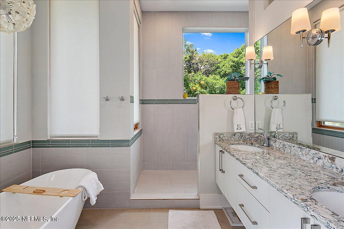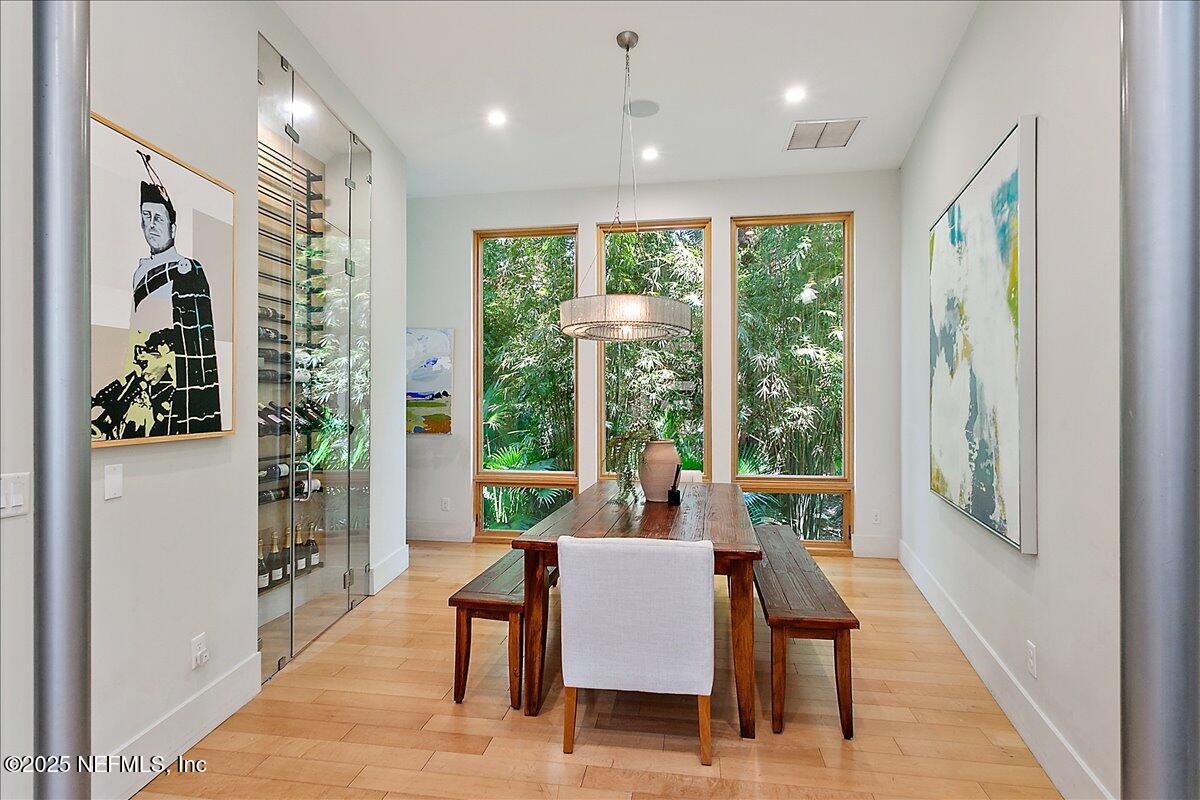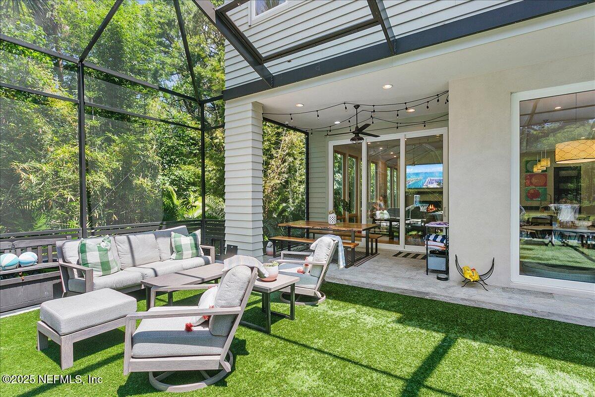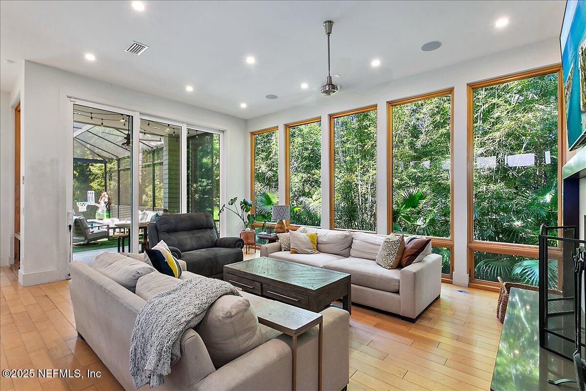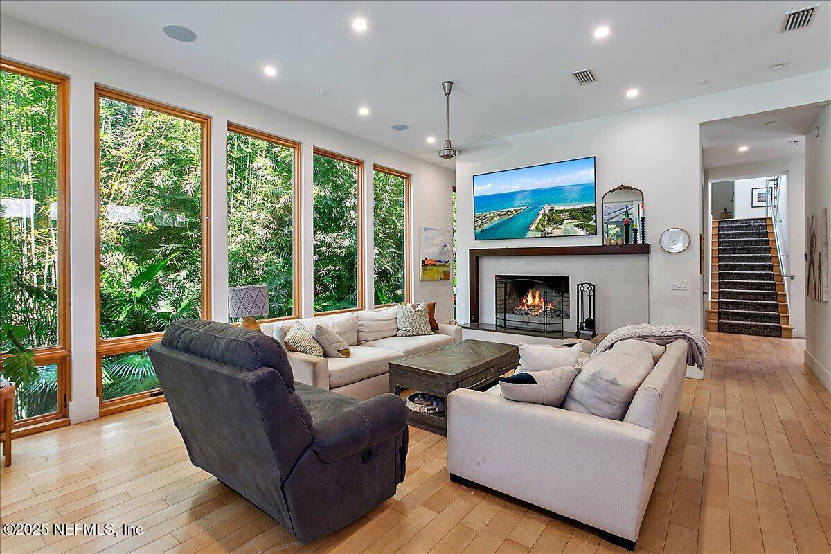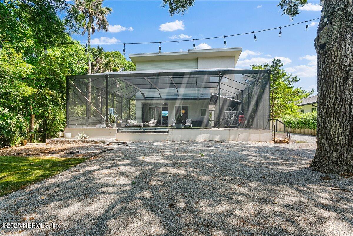 Steps to the ocean/ walk or bike to town center. This is a very rare offering in Atlantic Beach to own a private 1 acre legacy lot (73' x 600') with a stunning custom built, contemporary home w/screened pool, spa & summer kitchen and bar. Home was designed by James Dupree as a 2-story home with 3 levels & built by Signature Homes with attention to design, detail and quality throughout. 1st floor features a separate dining room with a custom wine wall display, great room chefs' kitchen w/sleek, white acrylic lacquer cabinets, quartz countertops, gas cooktop, breakfast bar & nook, walk-in pantry. Great room has beautiful fireplace and floor to ceiling windows & sliders overlooking pool & an expansive back yard with room for play or hobbies. 2nd level has a guest room w/full bath plus a den/flex room with a wall of windows. 3rd level is lavish master suite surrounded with windows, luxurious bath with stunning shower & separate tub featuring sea glass, Private, gated drive.