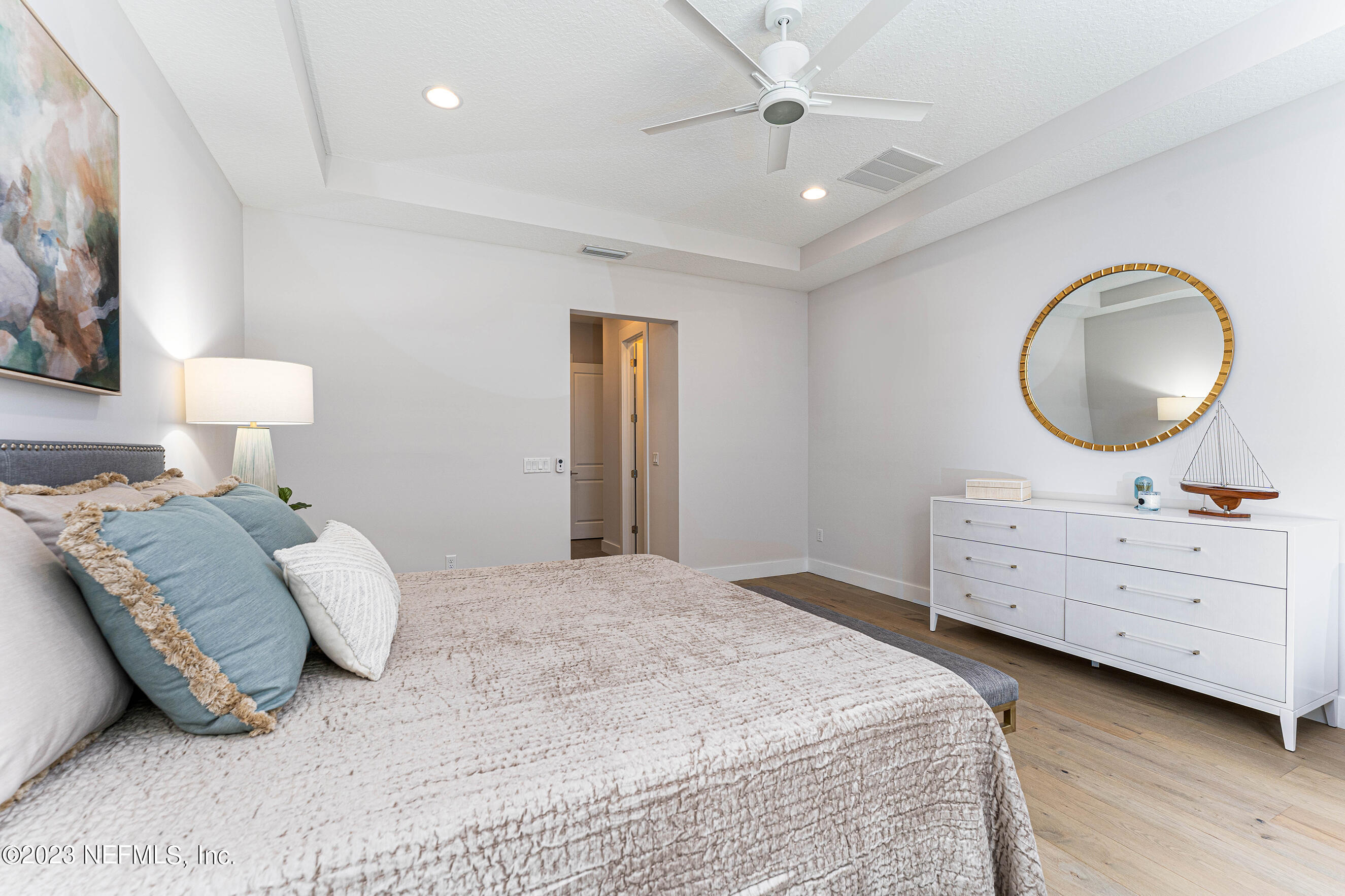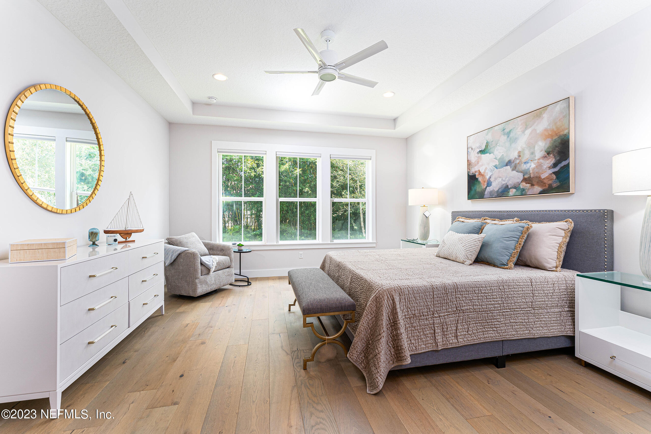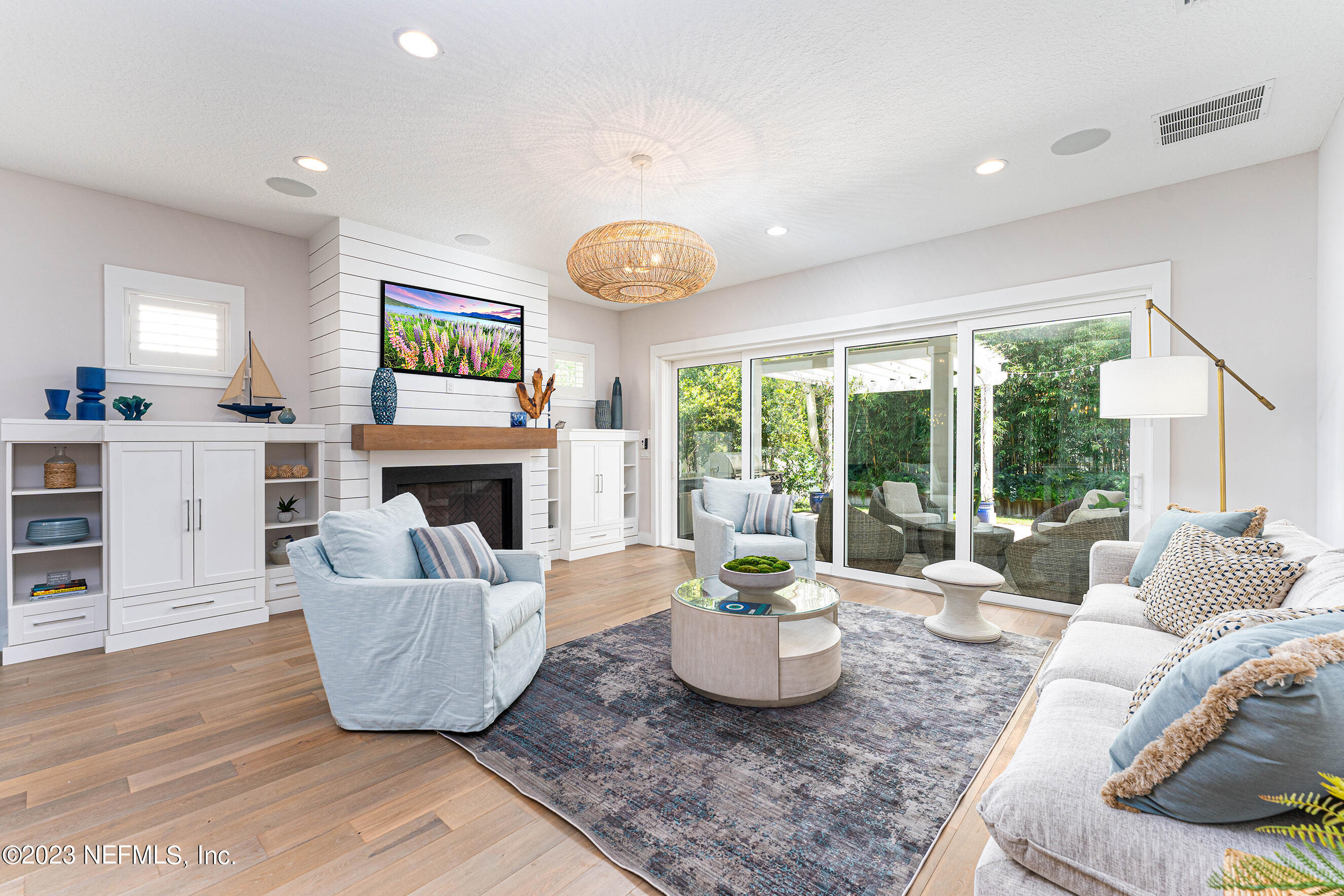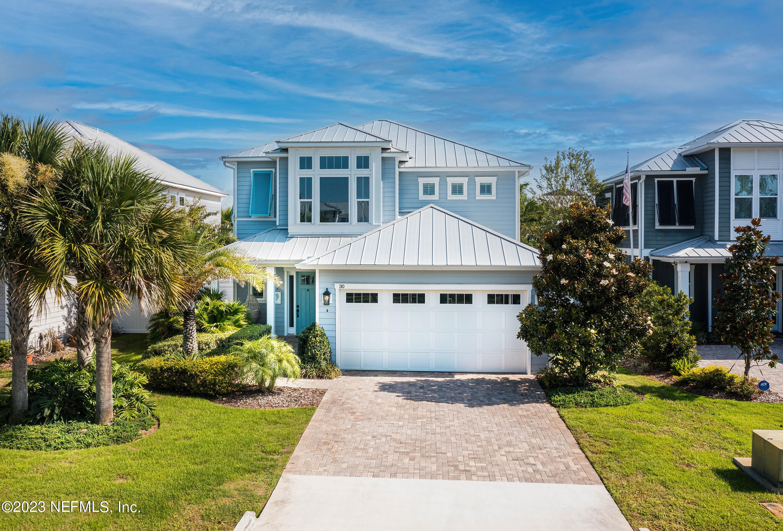Located in St Johns County. No HOA Fees. This home is close to everything people love and appreciate about Ponte Vedra Beach, Jacksonville and Jacksonville Beach, this custom home presents a luxurious living environment with four bedrooms and four baths in approx. 3,233 s.f. Discover new wood flooring, new electric blinds, high ceilings, large windows, a main-level primary suite with two large closets, upstairs loft, covered patio and summer kitchen. The family room, complete with fireplace, surround sound and built-ins, flows to an island kitchen with soft-close ceiling-height white Shaker cabinetry, quartz countertops, full glass-tile backsplash, a pantry, wine refrigerator, and stainless Bosch appliances.