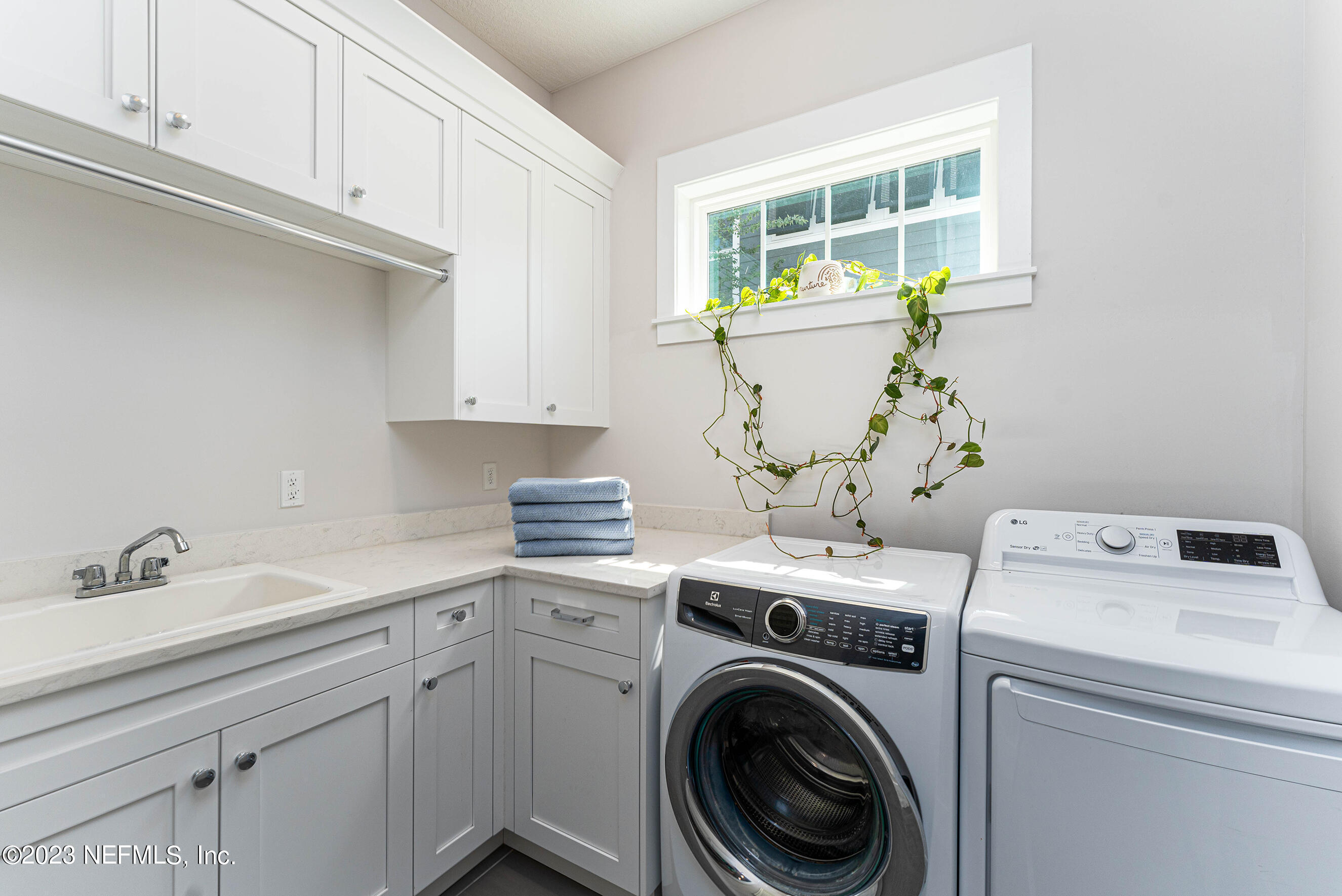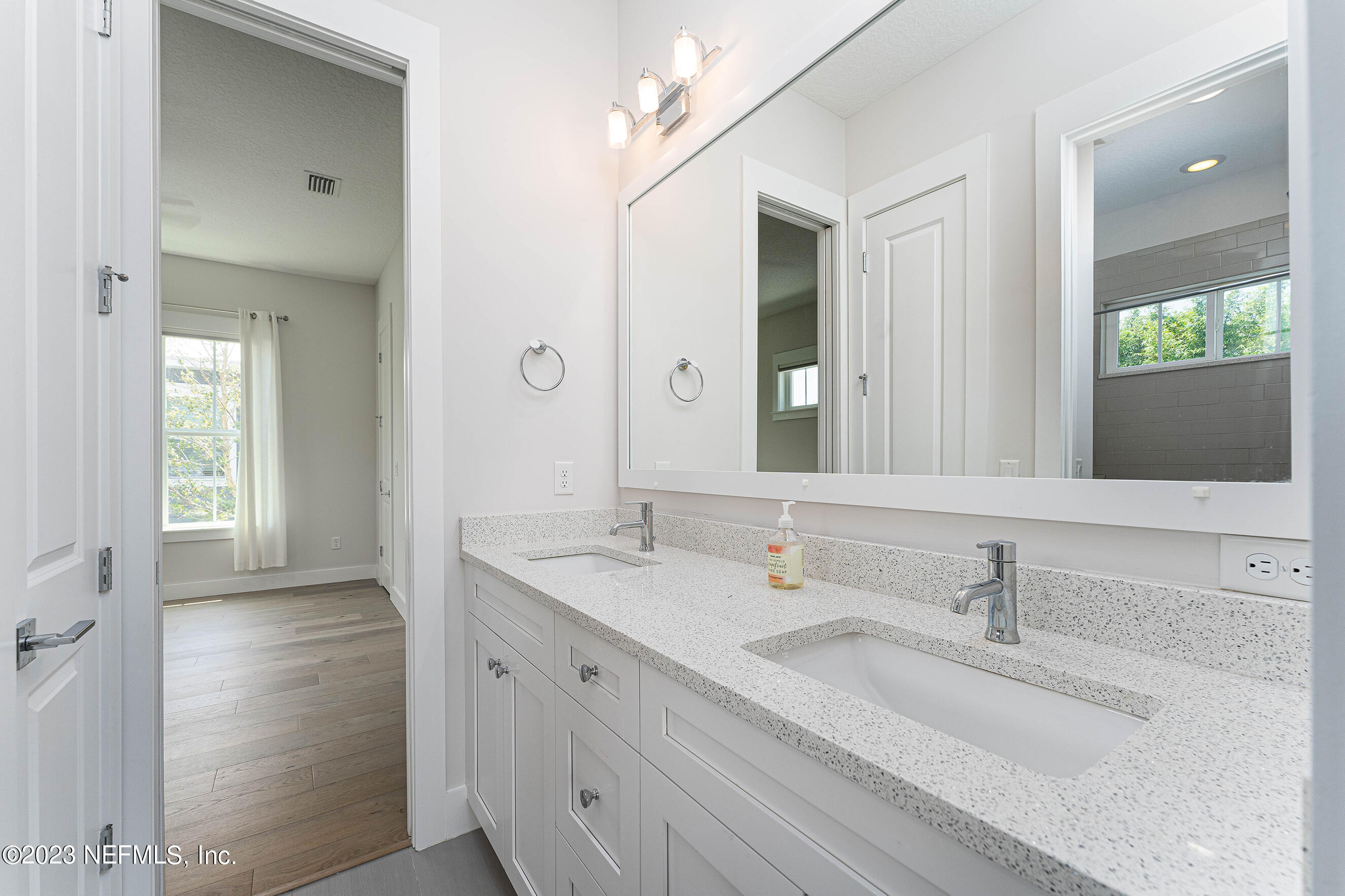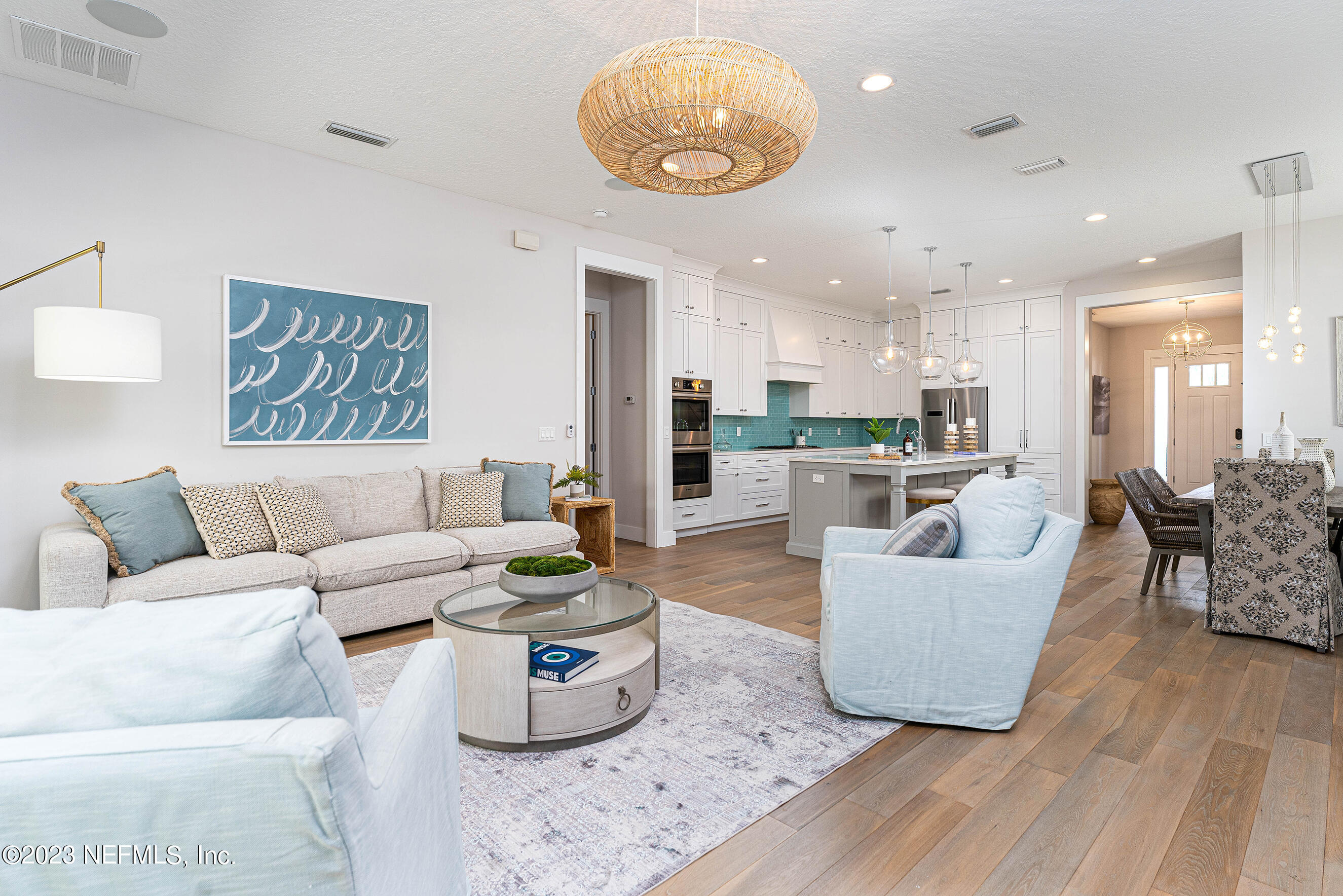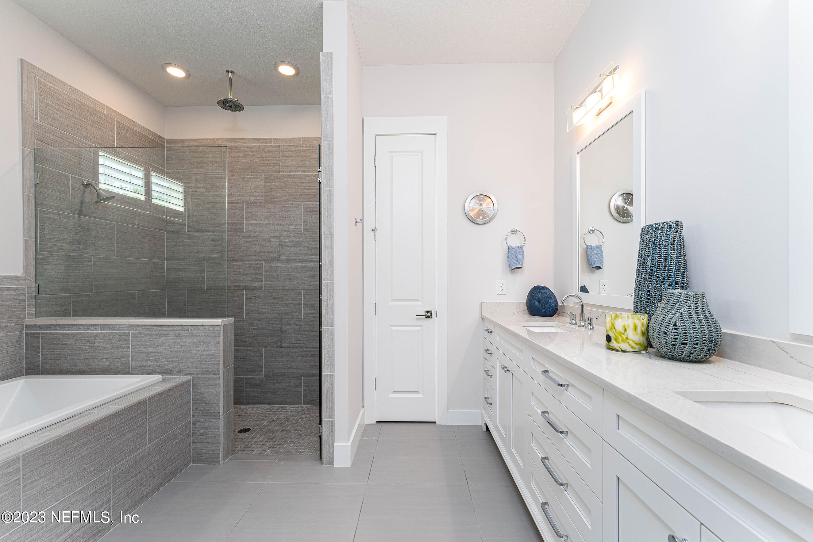 Located in St Johns County. No HOA Fees. This home is close to everything people love and appreciate about Ponte Vedra Beach, Jacksonville and Jacksonville Beach, this custom home presents a luxurious living environment with four bedrooms and four baths in approx. 3,233 s.f. Discover new wood flooring, new electric blinds, high ceilings, large windows, a main-level primary suite with two large closets, upstairs loft, covered patio and summer kitchen. The family room, complete with fireplace, surround sound and built-ins, flows to an island kitchen with soft-close ceiling-height white Shaker cabinetry, quartz countertops, full glass-tile backsplash, a pantry, wine refrigerator, and stainless Bosch appliances.
