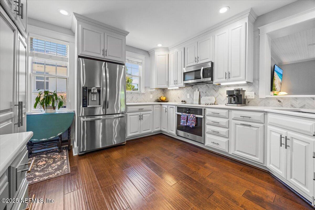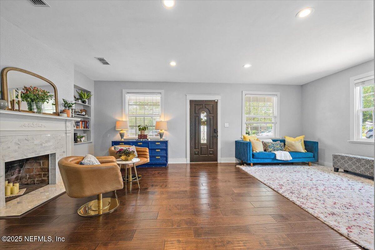 Welcome to this beautifully updated 4 bedroom, 3 bath home nestled in the heart of historic San Marco, one of Jacksonville's most beloved and walkable neighborhoods. Bursting with character and warmth, this home offers the perfect blend of timeless charm and modern convenience. Step inside and fall in love with the hand scraped hardwood floors and abundant natural light. The living room is anchored by a cozy wood burning fireplace, ideal for quiet evenings or hosting guests with an attached dining room adding elegance to everyday living. The updated kitchen features sleek quartz countertops, stainless steel appliances and custom cabinetry. Cozy family room with Mexican tile flooring and views of your private fenced backyard. The main house has 3 bedrooms, including the primary suite that has a tastefully remodeled en-suite bath. Two additional bedrooms offer flexibility for family, guests or a home office. Great laundry room with drop zone. See more... . Outside enjoy the Florida lifestyle on your patio, ideal for morning coffee or winding down at sunset. The large, fenced backyard is perfect for gardening and play and includes a detached 2 car garage with a 1-bedroom apartment. Located just a short way to Granada Park and boutiques, cafes, and fine dining. You'll love being a part of a vibrant, welcoming community with top-rated schools and easy access to downtown Jacksonville.