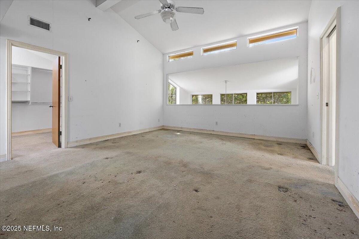 Talk about GREAT location. Steps to the ocean, east of Seminole Road, in small, quiet Cul-de-sac. The 3 story home has tons of potential as a renovation, or the location supports a tear down for lot value. The home has 3 bedrooms and 2.5 baths with 2 bedrooms and 1 bath down. One opens to a private patio, 2nd level is very open living with high ceilings, sliding door to 2 decks, fireplace and a rounded wall for style. 3rd level is a private, primary suite with a large bath and closet. This home has interesting lines and spaces with an art deco flair. Good size 2 car garage. Neighborhood has private beach access. Bike or golf cart ride to AB town center, parks, green markets, A rated school & Atlantic Beach County Club.