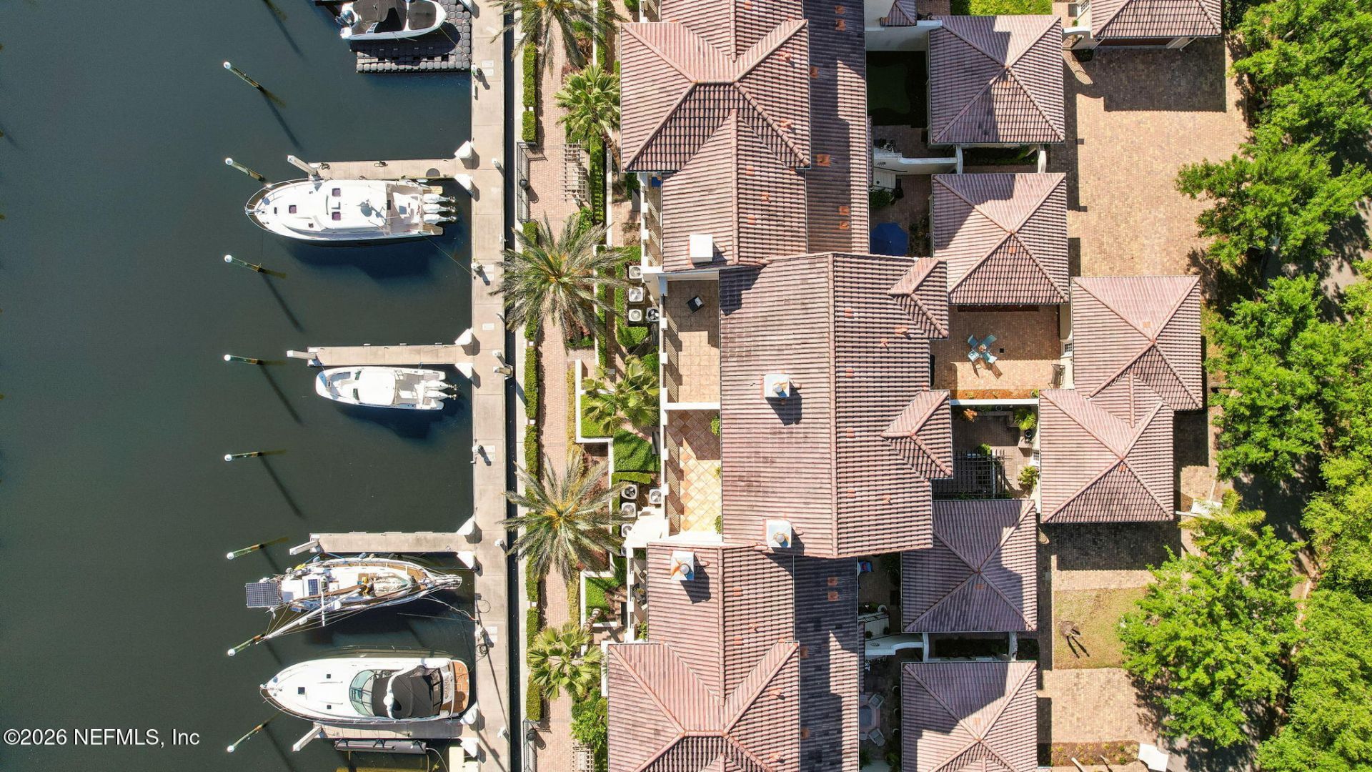 This unique waterside, high-ceilinged townhome is full of light + striking Harbortown Marina and Intracoastal Waterway views, nestled well off Atlantic Blvd. This tucked-away location is close to everything.. beach, Mayo, a wide variety of restaurants, and shopping! Inside, these owners have updated to an all-white kitchen and primary bathroom. With 4 levels, served by stairs as well as elevator, this plan offers the ultimate in privacy. 1st level: a bedroom overlooking the marina, and a bedroom overlooking the private courtyard, with a connecting, spacious bathroom. 2nd level: living area (kitchen, family room, dining room & 1/2 bath); French doors open to the balcony on the marina. 3rd level: all owner's suite (2 walk-in closets, spacious bathroom, bedroom w/sitting room/office, balcony). 4th level: Huge tiled balcony, covered and open, + an enormous storage room, convertible to living space with HOA approval. Private 2-car garage, gated pavered courtyard, 8' doors. Don't miss this!