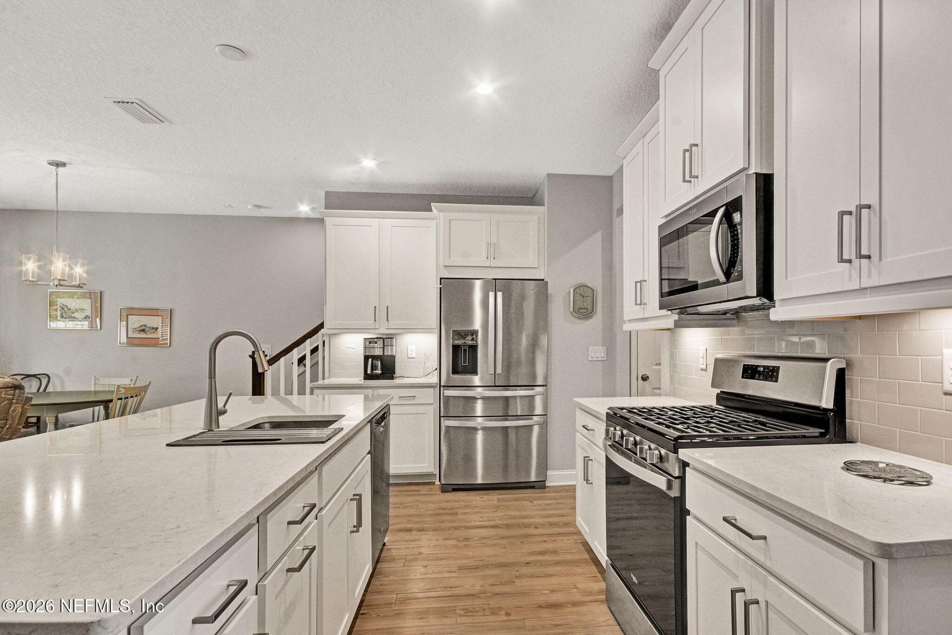 Welcome to coastal luxury in the heart of Pablo Cove! Built in 2023, this stylish 3-bedroom, 2.5-bath townhome with a 2-car garage offers a clean, modern aesthetic with white finishes throughout and stainless steel appliances, creating a bright and inviting atmosphere. Perfectly positioned just minutes from the beach, Mayo Clinic, and St. Johns Town Center, this home blends modern convenience with relaxed Florida coastal living.Step inside to an open-concept living area that flows seamlessly, designed for both comfort and entertaining. The kitchen features quartz countertops, stainless appliances, upgraded refrigerator and dishwasher, and a spacious walk-in pantry with custom shelving--ideal for organized everyday living.Upstairs, you'll find all three bedrooms, including a spacious primary suite with a walk-in shower, double vanity, and custom closet system designed for maximum functionality. Laundry is conveniently located upstairs, adding ease to your daily routine. Step outside to your screened-in patio, perfect for enjoying Florida's indoor-outdoor lifestyle--whether it's morning coffee or evening relaxation.Additional highlights include a 2-car garage and access to Pablo Cove's thoughtfully designed gated amenities, featuring a crystal blue pool, state-of-the-art fitness center, pavilion, recreation lawn, BBQ area, and scenic walking paths around the lake--ideal for active living and entertaining.This is low-maintenance coastal living at its finest--schedule your showing today!