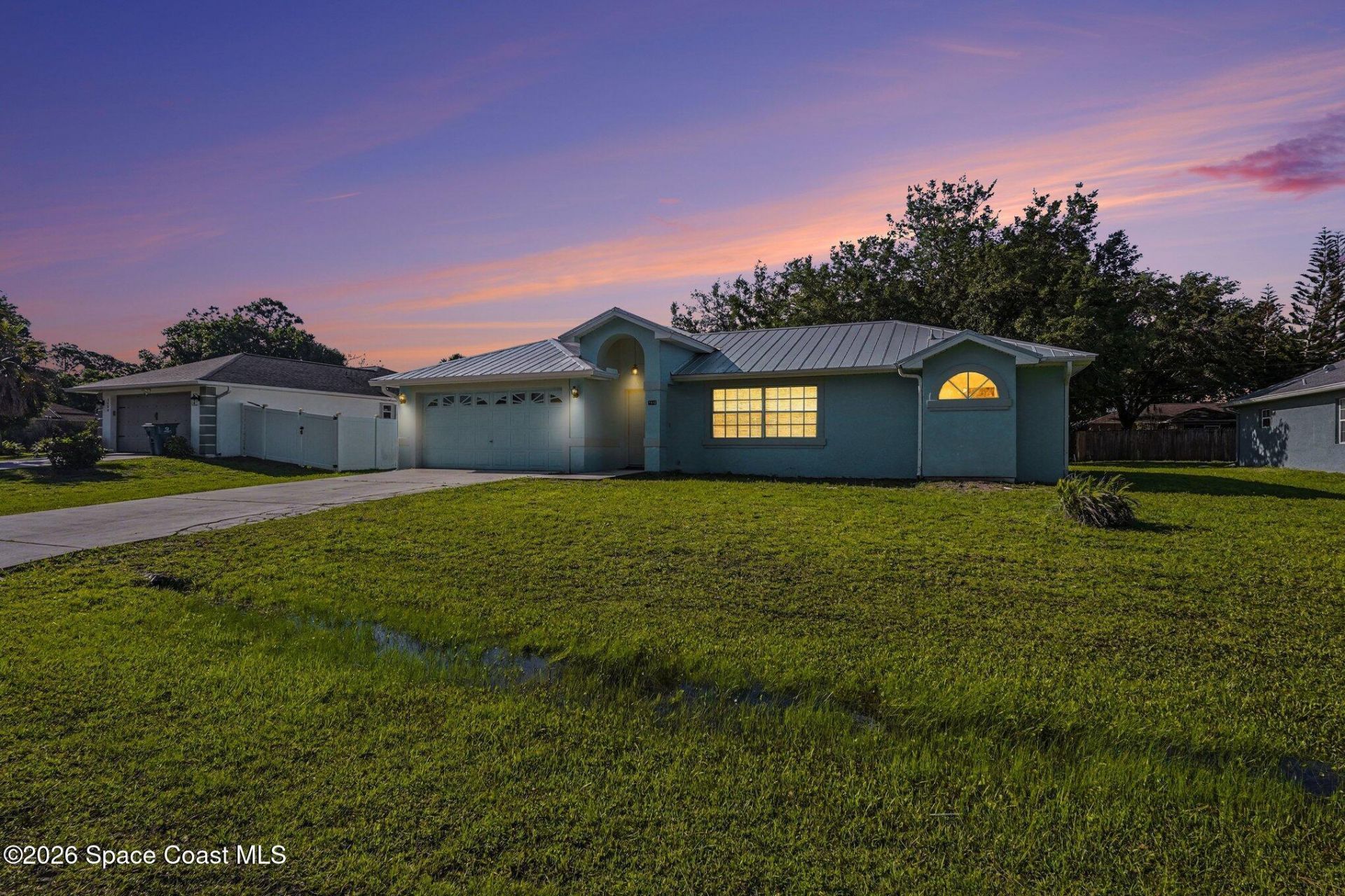 Welcome to this move-in ready 3-bedroom, 2-bath home in SE Palm Bay offering comfort, space, and low-maintenance living. The functional layout includes a formal living room, dining room, and separate family room, ideal foreveryday living and entertaining. Vinyl flooring throughout (no carpet), a durable metal roof, and gutters in front. The kitchen offers stainless steel appliances and opens to the main living areas for easy flow. The primary suite includes aspacious walk-in closet, double sinks, and a walk-in shower. Enjoy a screened-in porch overlooking a large backyard, perfect for relaxing or gatherings. Located on city water and close to shopping, dining, and major roadways, thishome offers convenience, value, and easy living. Whether youre starting fresh or simply looking for a place that feels like home -- this one is ready for you.