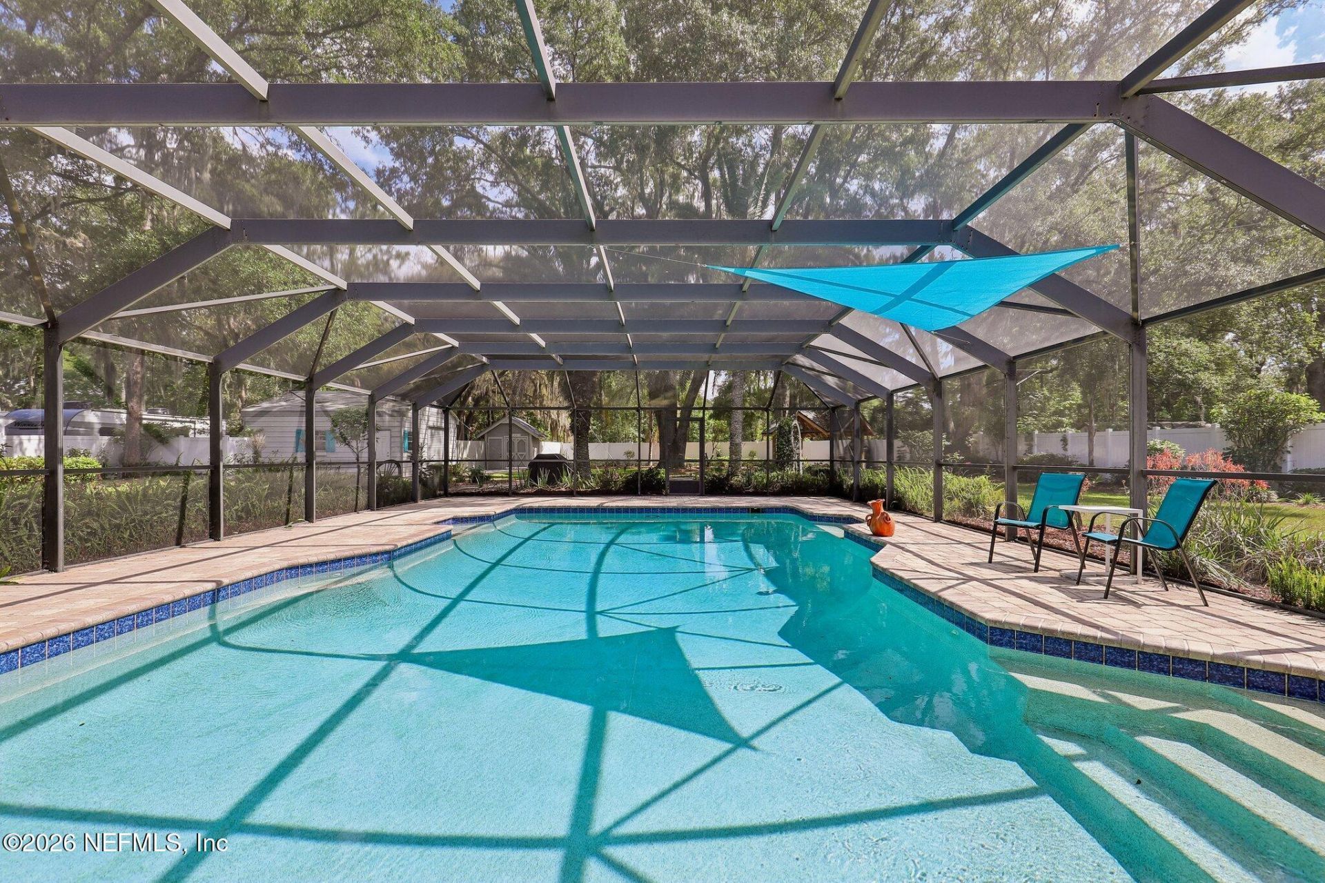 Featuring a screened-in pool, expansive outdoor living, and rare RV parking, this beautifully updated coastal-style ranch estate is perfectly positioned on a private .72-acre homesite in the desirable Fruit Cove Forest community of St. Johns County. Tucked away in a quiet, wooded setting, this property offers the ultimate blend of privacy and lifestyle--while still being just minutes from top-rated schools, shopping, and dining. Inside, you're welcomed by soaring vaulted ceilings and updated LVP flooring, creating a bright, open atmosphere throughout. The spacious layout is designed for both comfort and entertaining, featuring oversized living areas, a cozy fireplace, and a flexible floor plan with 3 bedrooms plus a dedicated office (ideal as a 4th bedroom). Step outside to your private backyard retreat, where the screened-in pool and lanai invite year-round relaxation. The equipped built-in grill and bar with a beer tap sets the tone for effortless entertaining overlooking the pool, while a charming gazebo with fireplace creates the perfect setting for evenings under the stars. Additional highlights include a dedicated RV parking, a rare find in this area, detached workshop/garage for hobbies or storage, separate shed for lawn equipment or gardening, expansive pavered outdoor living spaces. Extra-large rooms offering flexibility and comfort. Located in the sought-after Fruit Cove area, known for its spacious homesites and natural surroundings, this property delivers a true Old Florida lifestyle experience.