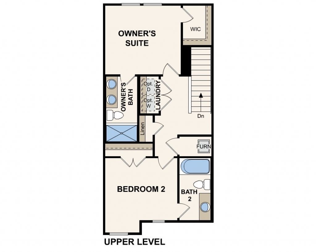 The two-story Atlantic plan blends comfort and versatility, with a main floor centered around an impressive open kitchen with gray cabinets, a walk-in pantry and an eat-in island. A dining area and a spacious great room are steps away, and a powder room rounds out this level. Upstairs, the owner's suite boasts a walk-in closet and a private bath with dual vanities. A secondary bedroom and a full bath complete this attractive plan.