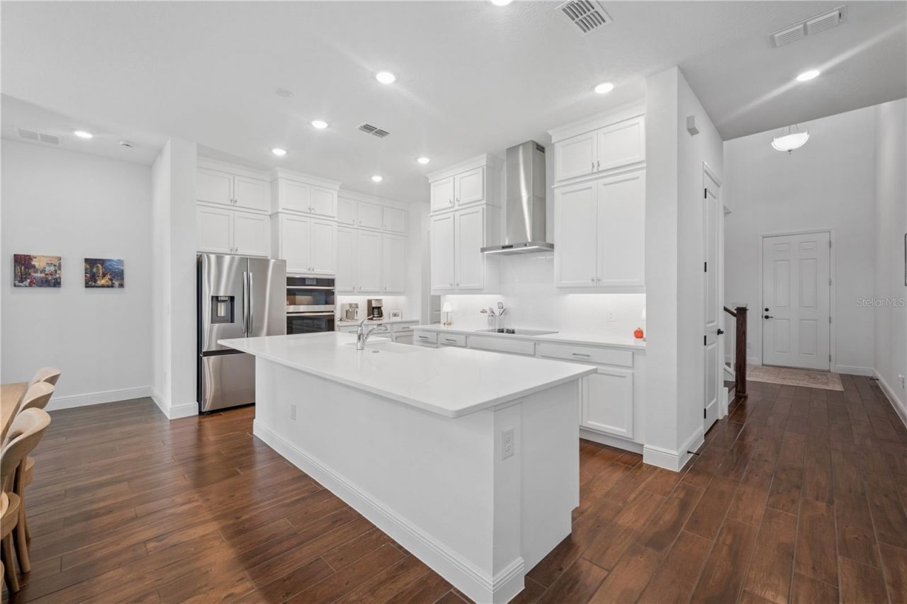 Why wait for new construction, when you can move right in! Welcome to this exceptional five-bedroom, four-bathroom home situated on Lake Star in the highly desirable Horizon West area. The inviting entryway leads to a spacious, bright, and open-concept layout filled with abundant natural light and wood look plank tile flooring on the lower level. This Ashton Woods Superior floor plan has been upgraded to include a downstairs 5th Bedroom/In-law suite. The gourmet kitchen features a neutral color palette, sleek quartz countertops, lots of cabinet storage, under cabinet lighting, a white farmhouse apron front single bowl sink, modern appliances, including a stainless-steel wall-mounted vent hood, smooth surface cooktop, built-in oven and microwave complemented by a tile backsplash. An open-concept design seamlessly connects the kitchen to the expansive family room, providing an ideal space for entertaining. The first-floor primary bedroom suite offers a tray ceiling and a luxurious bath featuring dual vanities, garden tub and glass enclosed shower with two shower heads. Three additional well-appointed bedrooms upstairs provide ample space for family and guests. The home also features a formal dining room, a den, and a spacious game room, offering versatile living options. A beautiful, stained oak staircase with open stair rails. Elegant finishes, including plantation shutters on all the windows and neutral tones create a timeless aesthetic throughout the residence. Outdoors, the property boasts a well-maintained exterior, and a paver driveway leading to the two-car garage. The spacious lot includes a covered lanai with a kitchen stub-out for a future outdoor kitchen, and a scenic lakefront view, providing a peaceful and tranquil setting. The community amenities include a clubhouse, a pool, a dog walk park, and a playground, offering convenient recreational opportunities. Conveniently located near shopping, dining, top-rated schools and world-famous Orlando attractions, including Disney parks, Downtown Winter Garden and 40 minutes to the Orlando International Airport. This home is also within minutes of Florida's Western Beltway 429, providing easy access to the area's major thoroughfares.