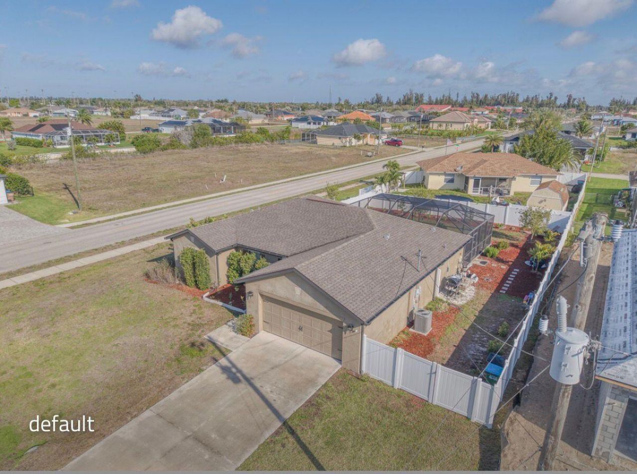 Discover this charming single-family home built in 2018, perfectly situated in desirable Southwest Cape Coral. Offering 3 bedrooms, 2 bathrooms, and 1,522 square feet of living space, this well-maintained residence features an open and inviting floor plan with stylish finishes throughout. Step inside to a seamless flow from the bright living area into the dining space and a well-appointed kitchen complete with a breakfast bar, kitchen island, and pantry-ideal for everyday living and entertaining. The split-bedroom layout provides privacy, while tile and carpet flooring, ceiling fans, and central air keep the home comfortable year-round. A 2-car attached garage adds convenience and storage. Outside, enjoy your private Florida oasis with a large in-ground pool and spacious patio area perfect for lounging, grilling, or relaxing in the sun. The fully fenced backyard ensures privacy and is ideal for families, kids, or pets. Additional highlights include a screened porch/lanai, manual shutters, and excellent curb appeal. Located on a generous 0.24-acre lot between Pine Island Road and Veterans Parkway, this home offers easy access to shopping, dining, schools, parks, and all the amenities Cape Coral has to offer. No HOA fees make it even more appealing. Whether you're looking for a move-in-ready home or a relaxing retreat, this 2018-built gem is ready for you. Schedule your private showing today!