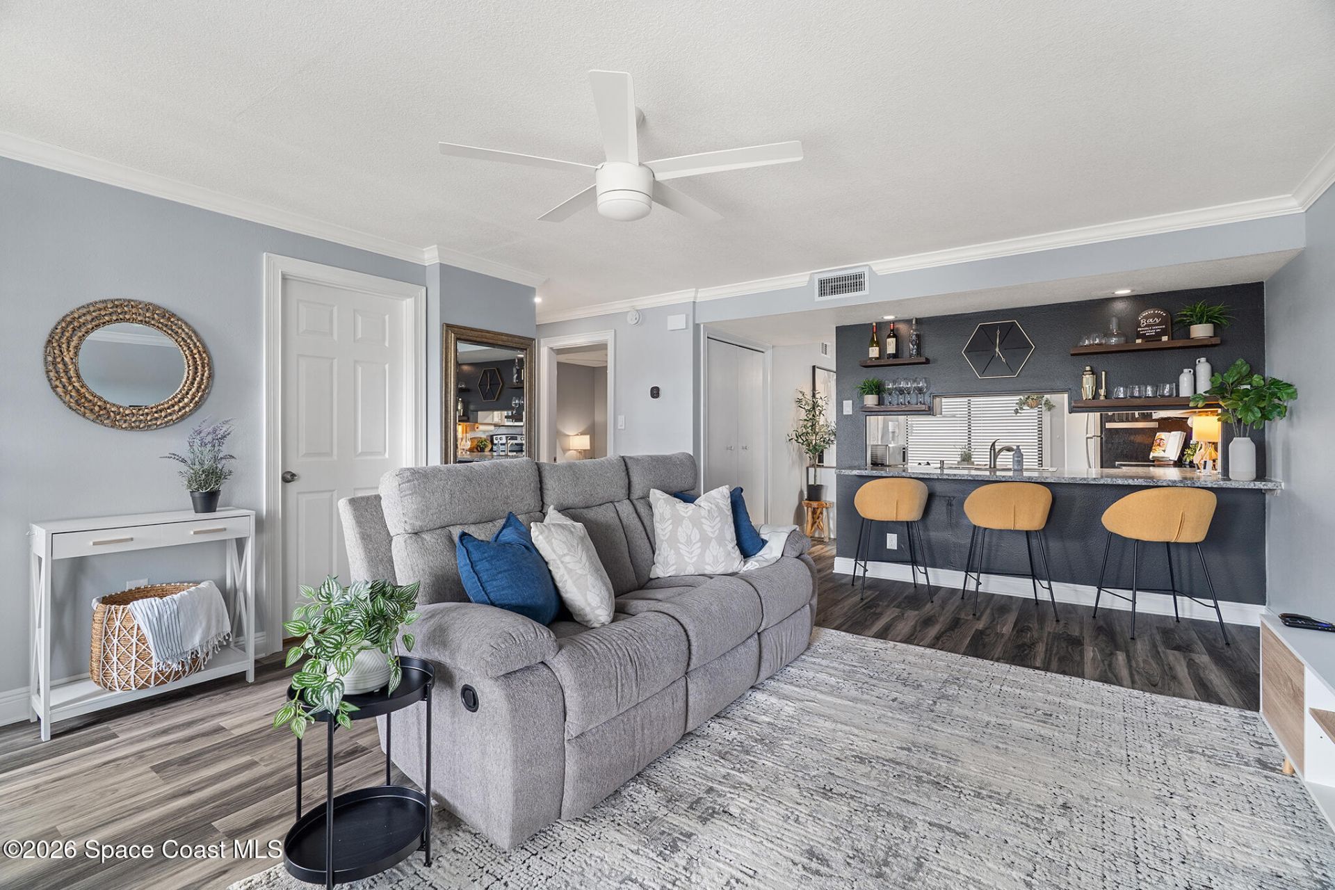 Updated, semi-furnished condo in Cape Canaveral, btwn the Banana River and Atlantic Ocean. Less than a mile to the beach, and a convenient 45 min drive to Orlando and Orlando Intl Airport, and within reach of Disney World & Universal. Features include a spacious living area, luxury vinyl plank flooring, fresh paint, ceiling fans throughout, and a renovated bathroom with a modern tile shower and updated vanity. The kitchen includes newer appliances and a private laundry closet. Enjoy a private balcony with no-see-um screening for added comfort and privacy, accessible from both the kitchen area and primary bedroom. HOA include water usage in the unit, roof replacement (2022), all exterior maintenance, pool, spa, sauna, tennis courts with pickleball lines, kayak storage, river access, and a car wash area. To see more, WATCH THE VIDEO TOUR!