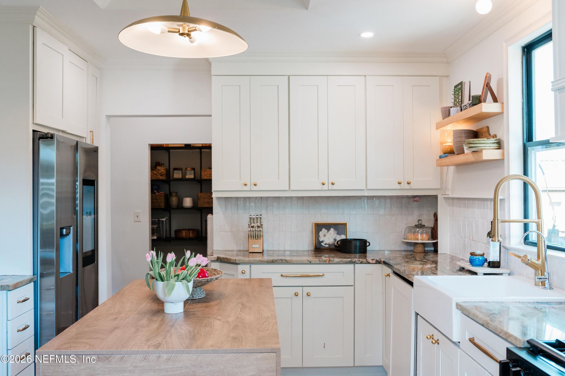 Prime Location! Five minute walk to 5-Points and Arts Market. Restaurants, museums, bars, coffee shops, Saint Johns River and more are all walk distance. Step into timeless character with this beautifully preserved 1914 historic home in the heart of Riverside and Avondale, one of Jacksonville's most desirable neighborhoods. Thoughtfully updated while honoring its original craftsmanship. This 2-story residence showcases original rich hardwood floors, a classic fireplace, elegant sliding pocket doors, and a striking stained glass window that highlights the grand staircase. Formal living & dining rooms are enhanced by crown molding and wainscoting, while surround sound in the living room adds a modern touch.Offering 3 bedrooms and 2.5 bathrooms, the home includes a spacious primary suite with an oversized walk-in shower, a generous walk-in closet with in-unit laundry conveniently tucked inside and a recently renovated powder bathroom. The fully remodeled kitchen blends style and function, featuring KraftMaid solid wood cabinetry, Level 6 Fusion granite countertops, stainless steel appliances, and a handcrafted Zia Zellige tile backsplashEnjoy Florida living year-round with multiple outdoor spaces, including a welcoming front porch, expansive rear deck, side pergola, and a private second-floor balcony.Major system improvements including high-efficiency HVAC, updated electrical and plumbing, reinforced foundation, and enhanced insulation throughout provide peace of mind, while a 5-stage reverse osmosis system, Series 48,000 water softener, natural gas tankless water heater, and garbage disposal bring convenience and efficiency to everyday living. A cement driveway and backyard shed add practical finishing touches.This rare offering seamlessly blends historic charm with modern comfort for the discerning buyer who wants it all.