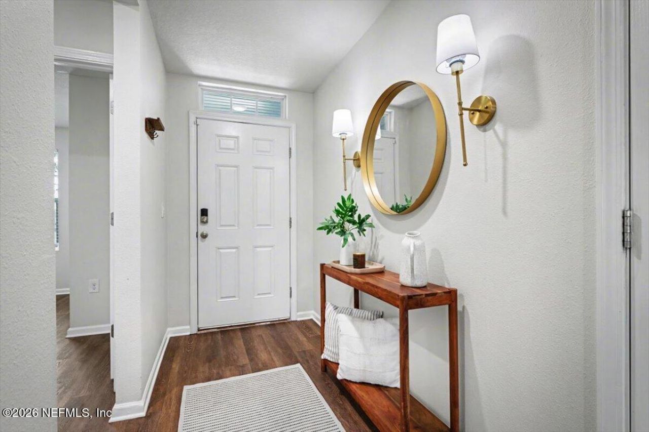 Move-in ready Fenced backyard Community poolMove-in ready home in Willow Springs with fresh neutral interior paint and brand-new luxury vinyl plank flooring throughout. Open-concept layout features a spacious kitchen with large island, stainless steel appliances, and seamless flow into the main living and dining areas.Split-bedroom floor plan offers separation between primary suite and secondary bedrooms. Primary suite includes dual vanities and a spacious layout. Vacant and professionally staged to showcase layout and functionality.Private backyard with full privacy fence and storage shed provides outdoor space for relaxing or entertaining. Located in Willow Springs with low HOA fees and no CDD, plus access to community amenities including pool and playground. Convenient to Green Cove Springs and approximately 25 miles to Jacksonville.