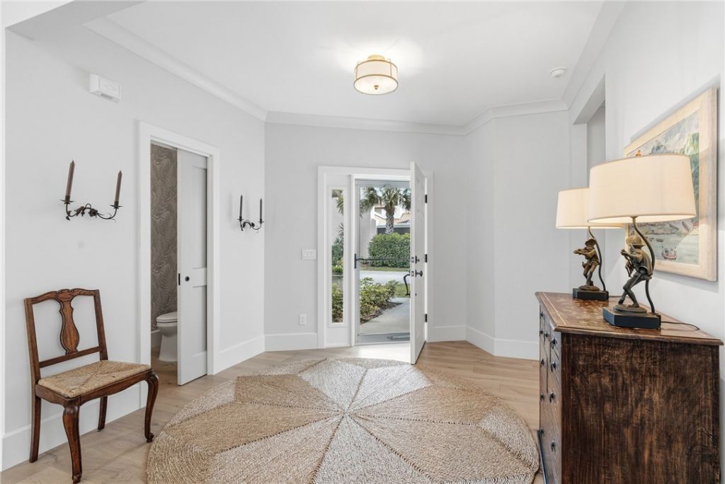 Stunning renovation completed in 2024 has transformed this home with luxury details and design. The French oak floors and expanded foyer greet you as enter, opening to the vaulted Living Rm w/limestone mantle fireplace and out to the lush private courtyard & pool. Split Bedroom layout plus Den provide privacy; custom designed Kitchen with Thermador appliances, island layout, tile accent wall & more. Enjoy the low maintenance lifestyle of a condo, and the privacy of a home! Seller lease-back thru end of Oct. Amenities: community pool, Moorings private beach access, Pet-friendly. PHOTOS SOON!