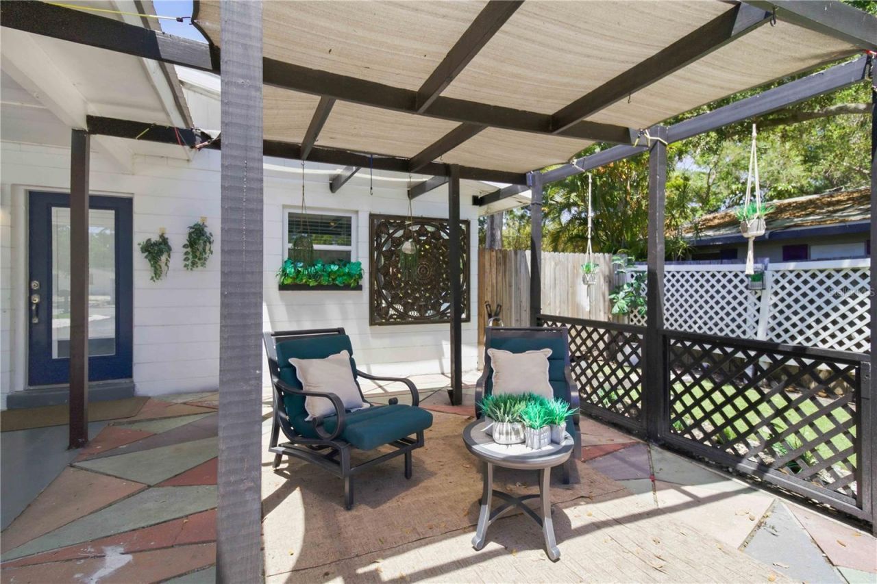 Step into this beautifully updated 2-bedroom, 2-bath home, where comfort meets style inside and out. From the moment you arrive, the peaceful setting at the end of a quiet cul-de-sac invites you to slow down and enjoy the space.Inside, you'll find a thoughtfully remodeled interior featuring modern laminate flooring, updated windows, and a bright, open layout. The kitchen is designed for both everyday living and entertaining, complete with solid wood cabinetry, granite countertops, brand-new appliances, and a spacious island perfect for casual dining or gathering with guests.The primary suite offers a true retreat with generous space, a walk-in closet, and a stunningly renovated bathroom showcasing designer tile, a walk-in shower, dual vanities, and granite finishes. A unique touch-direct access from the bathroom to the backyard-creates a seamless indoor-outdoor experience.Out back, your private oasis awaits. Enjoy a lush, shaded yard with new fencing, a gazebo, covered patio, and outdoor kitchen-ideal for relaxing evenings or hosting friends and family.Additional highlights include a durable metal roof, newer A/C, indoor laundry, and a covered carport with extra storage. The front patio, finished with slate tile and a pergola, adds even more charm and functionality.Perfectly located just minutes from Payne Park, downtown Sarasota, Siesta Key, and I-75, this home offers the best of both convenience and tranquility.