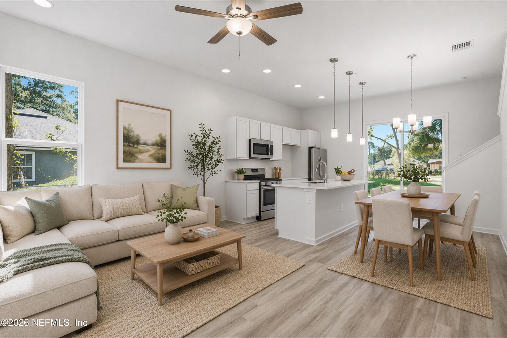 Brand-new 2026 construction-quick move-in available! This beautifully designed two-story home offers modern living with NO HOA and NO CDD fees, providing both flexibility and savings.Featuring 3 bedrooms and 2.5 bathrooms, all bedrooms, including the spacious primary suite, are conveniently located on the second floor, along with a full secondary bathroom for added comfort and privacy.The first floor showcases an open-concept layout, perfect for everyday living and entertaining, complete with a convenient half bathroom for guests. The modern kitchen comes fully equipped with stainless steel appliances and features a sliding glass door that fills the space with natural light while providing easy access to the backyard, creating a seamless indoor-outdoor living experience.Enjoy the peace of mind of new construction, modern finishes, energy efficiency, and low-maintenance living. Conveniently located near major highways, shopping, dining, and Jacksonville International