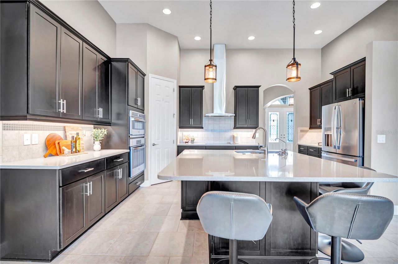 Welcome to 32697 Natural Bridge, ideally situated 'over the bridge in the amenity-rich community of Union Park. Built by HOMES BY WESTBAY, this award-winning KEY LARGO floor plan showcases a thoughtfully designed split layout with soaring 12-foot ceilings that create an open, airy feel throughout the heart of the home. Additional living space includes a designated OFFICE with glass French doors, ideal for working from home, as well as a spacious BONUS room that offers endless flexibility for a media room, playroom, or guest retreat. Dramatic sliding glass doors frame breathtaking views of the SALTWATER POOL and SPA, all set against a serene backdrop of CONSERVATION AND POND VIEWS on an OVERSIZED homesite. The luxurious owner's retreat is a true sanctuary, featuring a PRIVATE SITTING AREA and elegant French doors that open directly to your outdoor oasis. The chef's kitchen is beautifully appointed with QUARTZ countertops and newer appliances making it both stylish and functional for everyday living and entertaining. Additional highlights include a NEW ROOF (2026), WATER TREATMENT SYSTEM with Reverse Osmosis in kitchen, Wall oven plus Convention/Microwave combo, under cabinet lighting, Kitchen island and laundry room custom cabinetry storage, an abundance of OVERHEAD storage in garage and gutters for added peace of mind. Inside, you'll find NO CARPET throughout, CROWN MOLDING, and a stunning CUSTOM MILLWORK feature wall that adds warmth and character. Step outside to enjoy the screened lanai and fully fenced yard, offering the perfect space to relax, entertain, and take in the tranquil surroundings. Union Park offers its residents resort-style amenities including a lap pool, clubhouse, fitness center, splash pad, dog park, zen garden, playground, and miles of scenic biking and walking trails. Plus, CABLE/INTERNET is included in the HOA. Don't miss your opportunity to own this exceptional home. Schedule your private tour today!