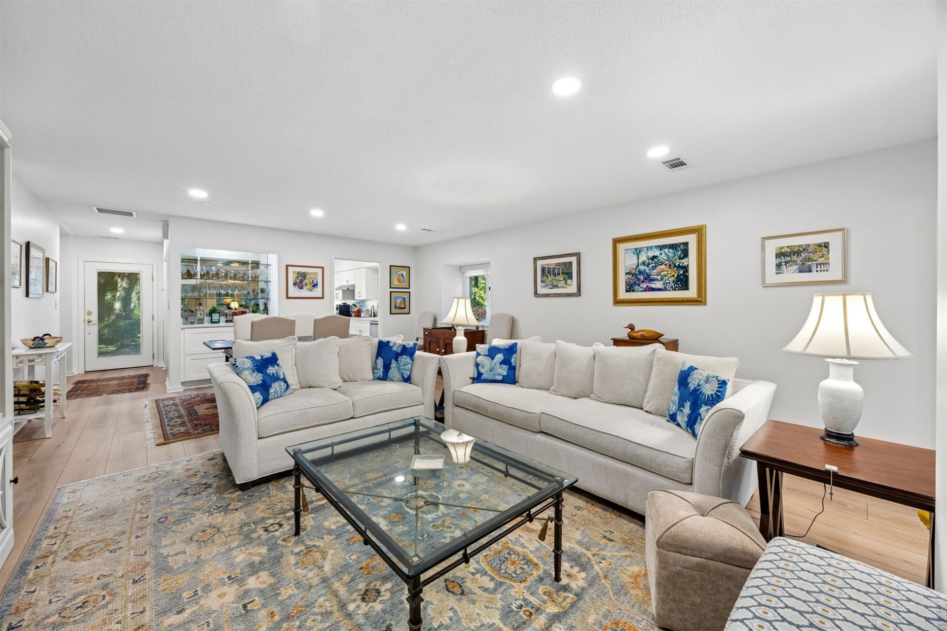 Experience the pinnacle of island living in this meticulously remodeled residence, situated within the exclusive gated community of the Omni Amelia Island Plantation. This home offers a rare blend of designer luxury and natural beauty. Professionally reimagined by JP Build | Design, no expense was spared in this comprehensive renovation. The open-concept interior is flooded with abundant natural light, highlighting the new CoreTech Hampshire Oak flooring that flows seamlessly throughout. The gourmet kitchen is a culinary showpiece, featuring Shaker cabinetry, Pompei Valley Quartz counters, a Raku Ocean glass tile backsplash, and premium Bosch appliances.The primary wing has been enhanced with an extended office area, providing a quiet retreat for work or relaxation. Both the primary and guest baths are spa-like sanctuaries, finished with glass tile showers and quartz counters. Storage is perfected with custom Closets by Design throughout. Practical upgrades ensure ultimate peace of mind, including a new HVAC system with UV light purification, Marvin windows, and a whole-home EcoWater filtration system. Outside, the extended paver patio offers a private, tranquil setting to enjoy the lush landscape. Whether you are seeking a distinguished primary residence, a sophisticated second home, or a property with short-term rental capability, 3318 Sea Marsh Road represents a turn-key opportunity to own a piece of paradise on Amelia Island.