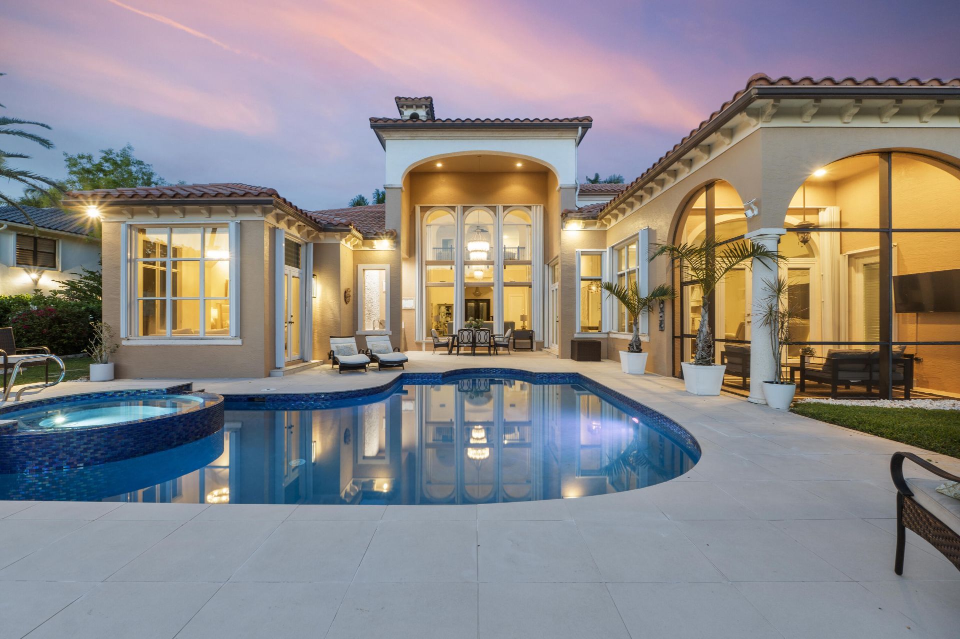 Experience elevated South Florida living in this fully remodeled 6-bedroom, 6.5-bath lakefront estate in the prestigious double-gated subdivision The Colony at Heron Bay in Parkland. With coveted west-facing exposure, enjoy breathtaking sunset views. This home shows like a model, featuring soaring high ceilings and a seamless open layout. The first-floor primary suite offers dual bathrooms, double vanities, and spacious walk-in closets. The chef's kitchen includes upgraded appliances, including Sub-Zero refrigerator, wine cooler, and a gas range. Step outside to a resort-style backyard with a remodeled salt water heated pool and spa, summer kitchen, and lush tropical landscaping including a stunning canary palm. Complete with generator, accordion shutters, and low HOA fees.