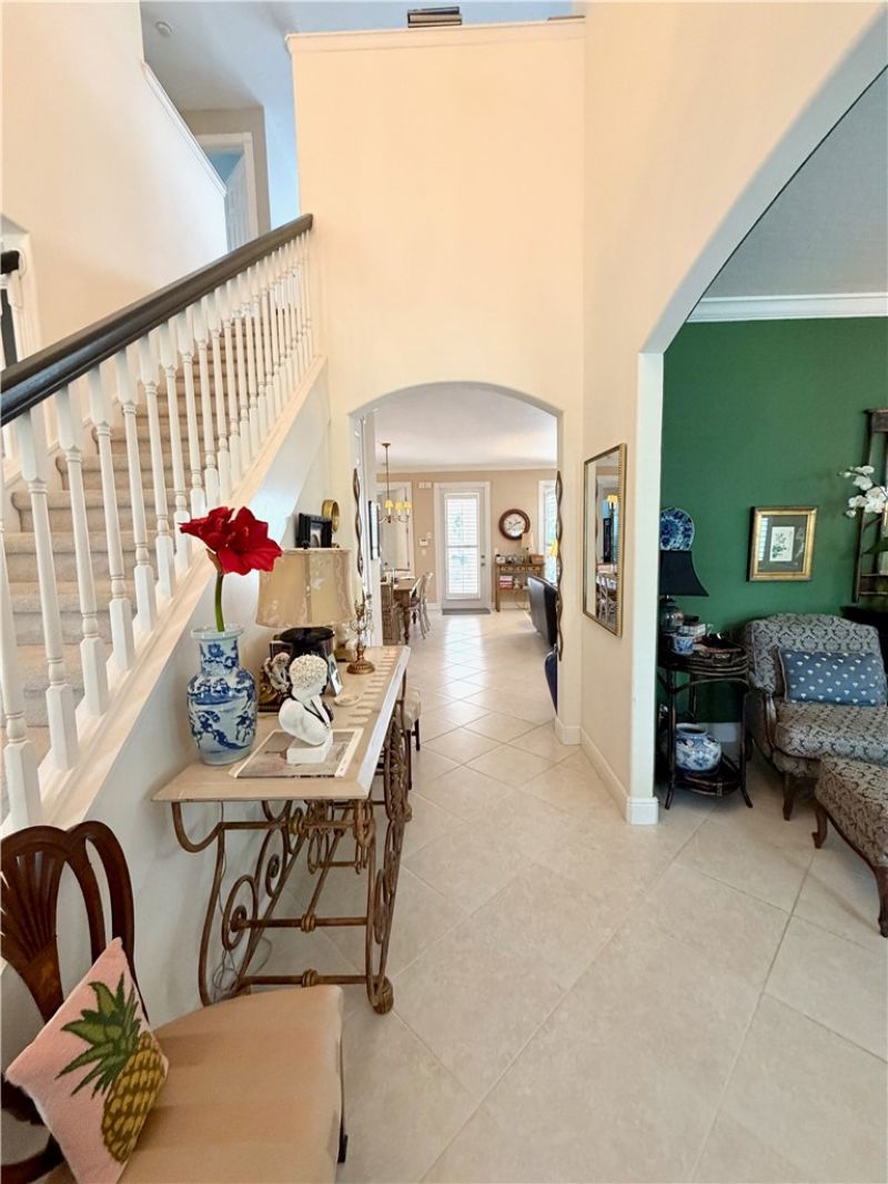 Built by Southern Classic Homes with high-end upgrades: 8 doors, crown molding, solid surface countertops & 42 upper cabinets, natural gas and a front porch. Once you enter you feel the charm, glass front door, stairway with wood railings, tile flooring throughout. Master suite on 1st. floor, plenty of French doors open to relaxing screened pool with waterfall and lush landscaping. New roof 23, A/C replaced, new 6 burner gas stove, new gas hot water heater, even some impact windows. Front overlooks lake & community pool. Walking distance to Pt. W Golf & Country club.