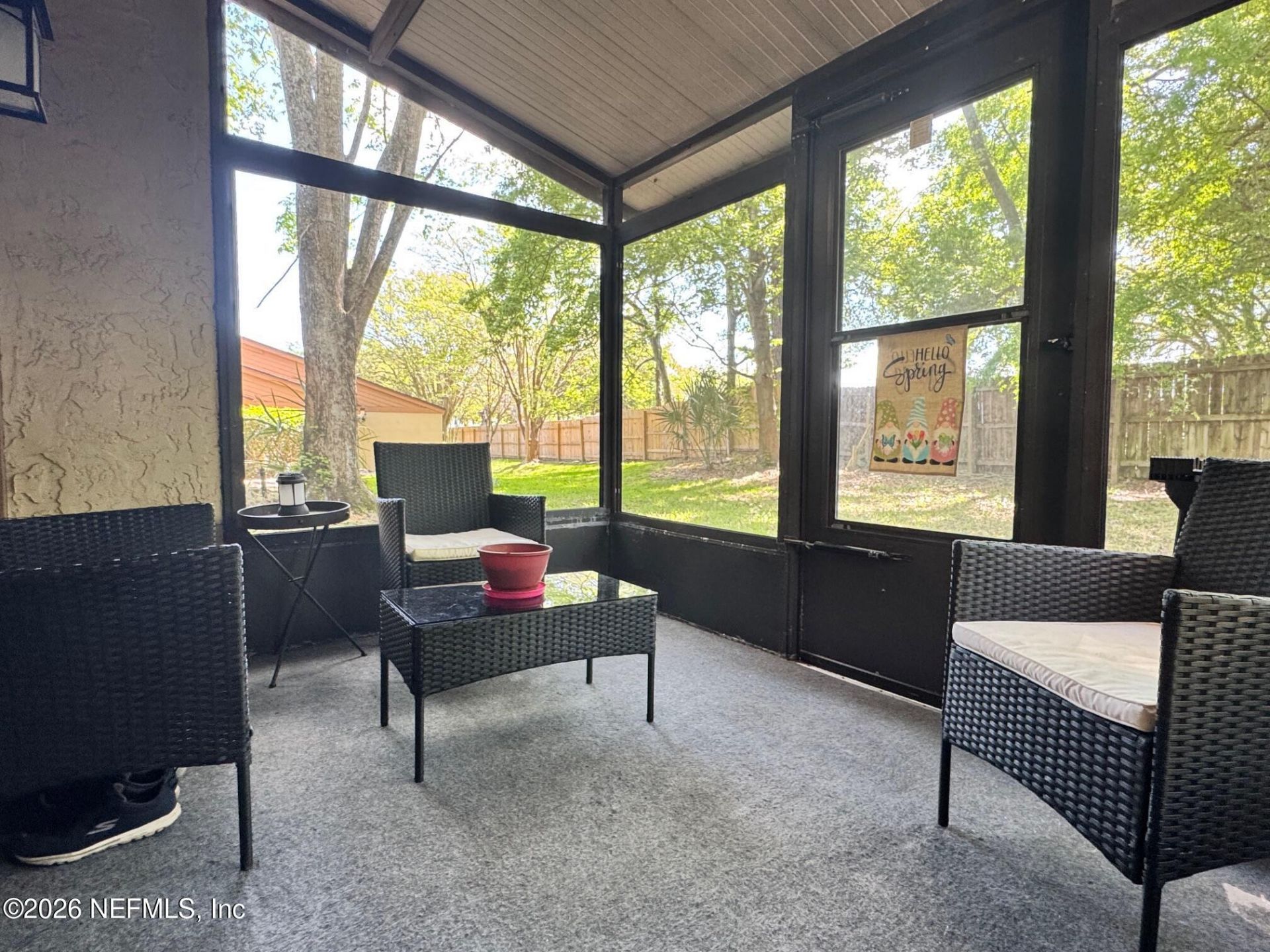 Easy, maintenance-free living available in this end unit, 2 bedroom, 2.5 bath townhome, which has been beautifully updated for today's modern style. With no carpet on the first level, a tidy kitchen (with laundry closet) overlooks the dining space and gathering room with a wood-burning fireplace. Step outside onto your private, fully-screened lanai for additional space. A half bath is conveniently located on the first floor. Upstairs are two bedrooms on either side of the landing, lending privacy to residents. A full size bathroom is accessible from the landing, and the owners' suite boasts it's own full size bathroom. The washer and dryer convey. Wells Ridge offers a community clubhouse and swimming pool, as well as one dedicated parking spot per unit, and the monthly association fee covers the roof, exterior maintenance, and landscaping services. Conveniently located near major thoroughfares, retail, dining and NAS Jax. Call today for a private showing! (Pictures soon.)